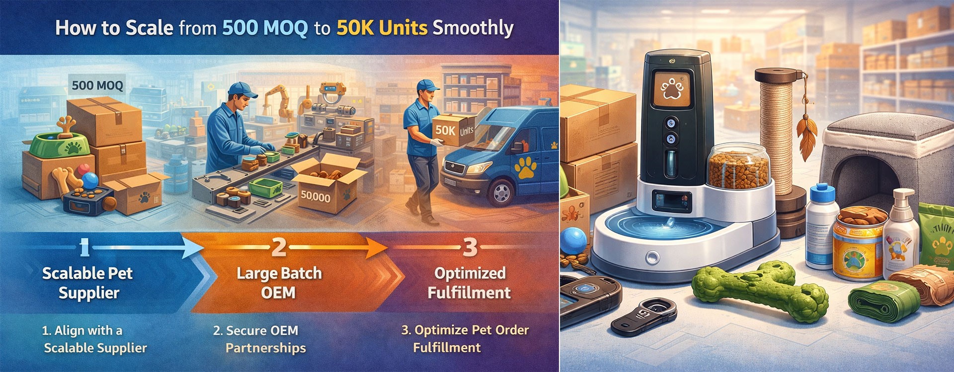 In the fast-growing pet industry, businesses often start small but dream big. Moving from 500 units to mass production of 50,000 requires more than ambition—it requires strategy. Success depends on choosing a scalable pet supplier, leveraging large batch OEM capabilities, and streamlining pet order fulfillment to meet rising demand without sacrificing quality. These three pillars ensure that scaling is smooth, cost-efficient, and sustainable for long-term growth.